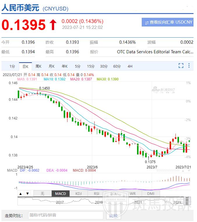 7月21日,人民币兑美元中间价上调10个基点,报7.1456。