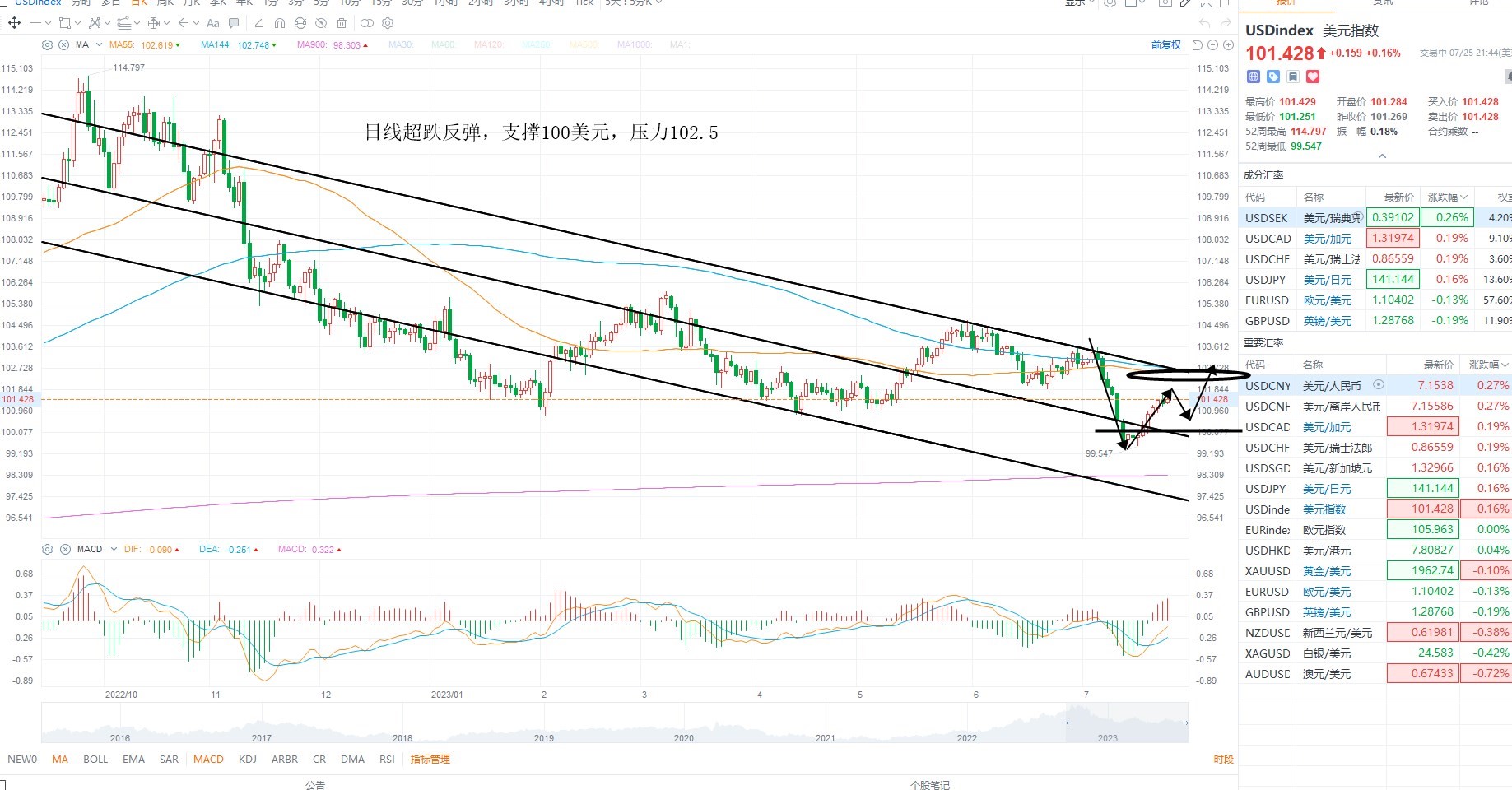 美元指数小幅震荡,市场在等待美联储利率决议落地之后的方向选择,从预期上来看,年内最后一次加息的概率很大,但是否存在降息的可能性需要等待美联储主席鲍威尔的表述,不排除美元指数测试压力之后从高回落的可能性,金价方面维持区间震荡,目前依然在多头反弹结构之中,等待上方密集压力区间突破为主,日线级别回踩不破支撑则反复低吸,美原油继续走强,主要是供给端的压力以及需求的恢复预期,支撑油价,日内偏多为主