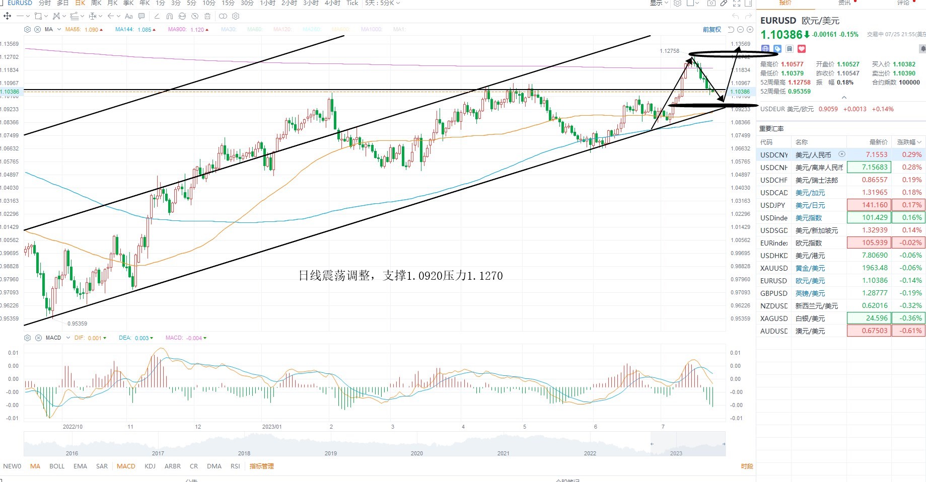 欧美短期继续走弱,且跌破前期高点位置,目前不排除回踩通道下沿支撑的可能性,主要是美元指数的超跌反弹,施压了非美的走强,不过美元指数并未走出反转结构,因此日内等待非美调整到位,同时关注美联储利率决议落地之后的方向选择,欧美日线级别通道支撑1.0920附近不破,等待低吸,上方压力前期高点1.1270附近