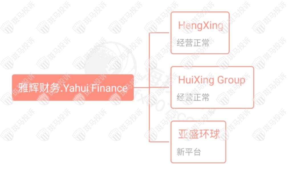 主白标关系显示,雅辉财务Yahui Finance平台和3家平台存在关联。