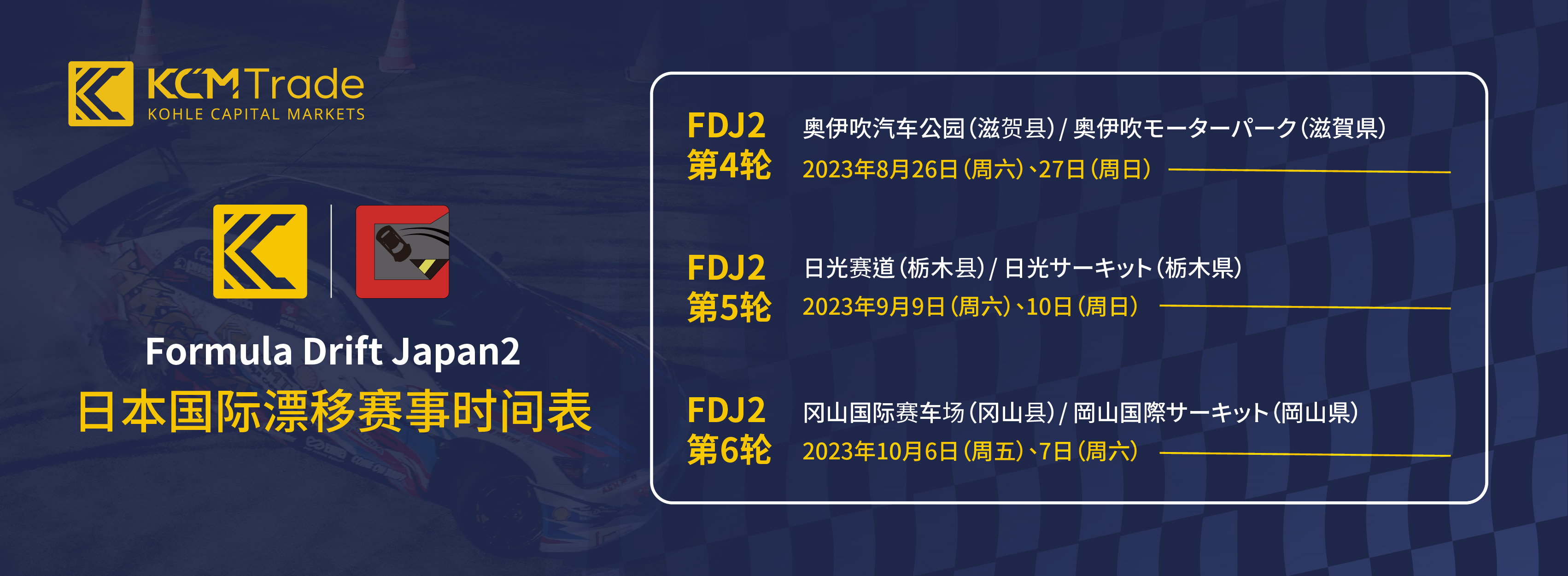 作为全球顶尖金融行业品牌,KCM Trade以其卓越的实力和专业的服务在国际市场上享有盛誉。赞助各类国际赛事是KCM Trade品牌战略推广的一部分,上周7月21-22日,由KCM Trade赞助的HKGSA漂移团队在最近进行的日本漂移方程式(FDJ)第三轮比赛中取得了令人瞩目的成绩,展现出顶级赛车技术和团队实力。