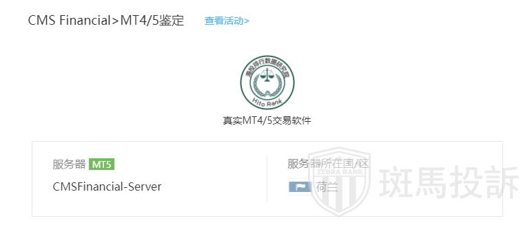 CMS Financial平台在斑马投诉暂未收到投诉信息