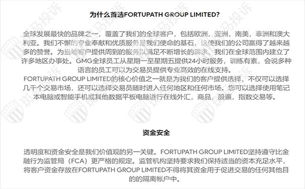 Fortupath Group 外汇平台怎么样?Fortupath Group 外汇平台监管怎么样?安全吗?相信很多炒外汇的内行人都知道Fortupath Group ,不过对于新手交易员来说,或许对于Fortupath Group 外汇平台还比较陌生。本文就为咱们简略介绍一下Fortupath Group 外汇平台,以及Fortupath Group 平台是否正规的相关问题,感兴趣的投资者可以了解一下,希望对大家有所帮助。