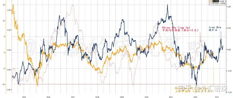 铁矿石价格的势头正在回升,往往领先长债收益率一个月、市场三个月。
