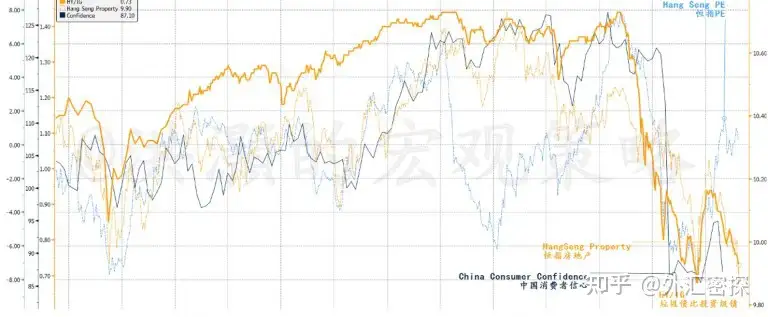 虽然之前的讨论提出了一些非共识的观察,但房地产行业依然面临着严峻的挑战。在图表 2中,我们可以看到,虽然房地产行业的估值有所修复,但房地产高收益率美元债券相对于投资级债券的表现似乎在向次低点运行,这种走势与中国消费者信心和房地产行业指数相一致。