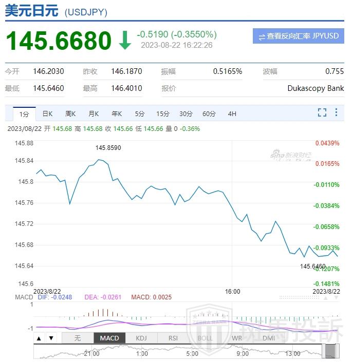 本周一(8月21日),美元兑日元的汇率低至145.15,而在上周,美元兑日元的汇率在146附近徘徊。