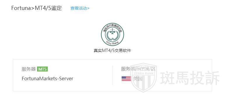 Fortuna平台服务器有1台,在美国。