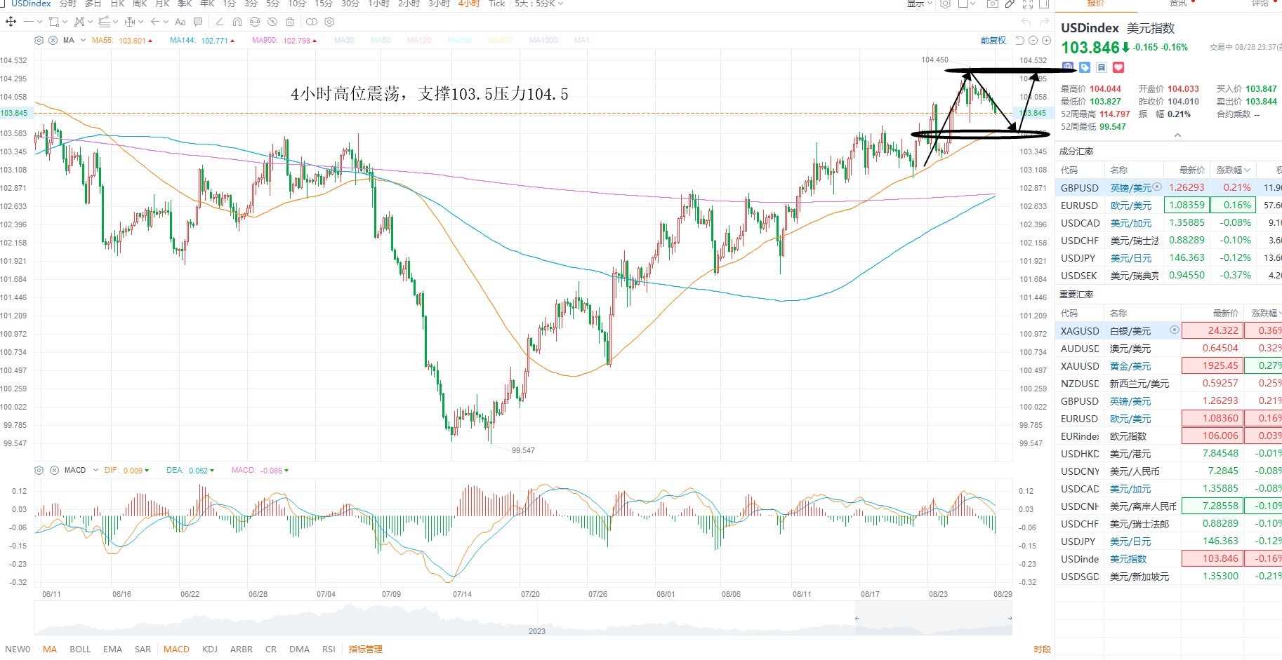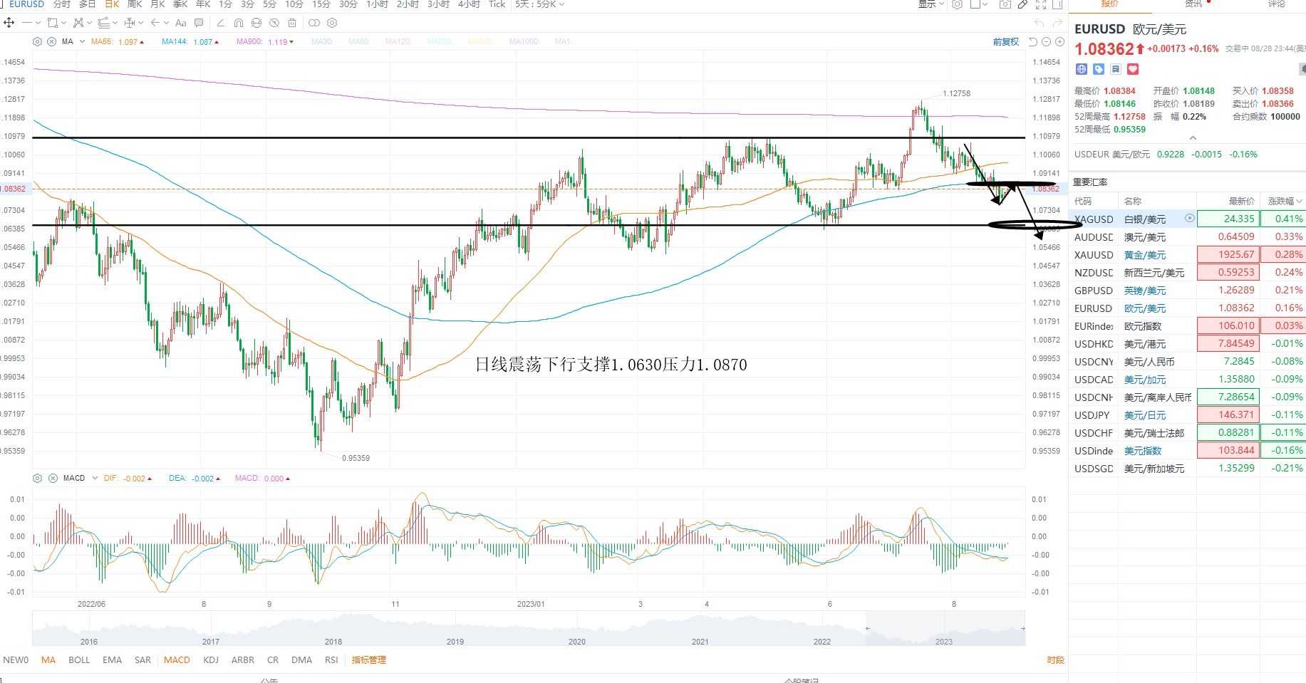 欧美短期震荡反弹,但依然再下行结构之中,主要是美元指数震荡回落,而非美依然再调整之中,叠加美联储主席的鹰派基调,加息预期继续升温,支撑美元走高,日内非美等待压力测试之后的沽空机会为主,欧美日线级别压力1.0870附近,下方支撑1.0650