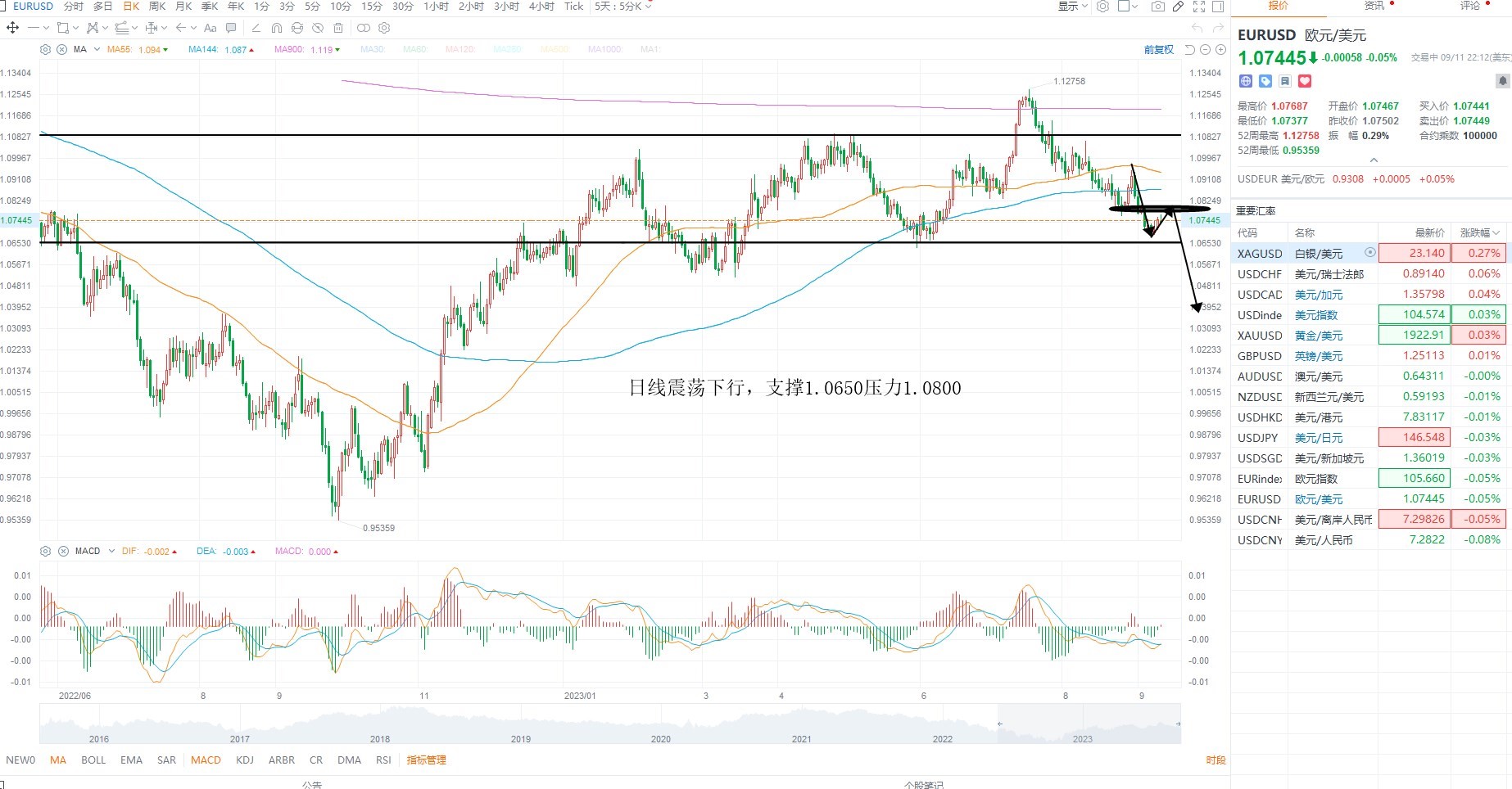 欧美短期维持低位震荡,而非美目前并未进入多头结构,这里依然是下行趋势,主要是美元指数高位震荡,在利率决议没有落地之前,很难出现大级别的反弹,结构上等待非美短期沽空机会,日线级别上来看,欧美反弹压力1.0800附近等待沽空,下方支撑1.0650附近,跌破则加速下行