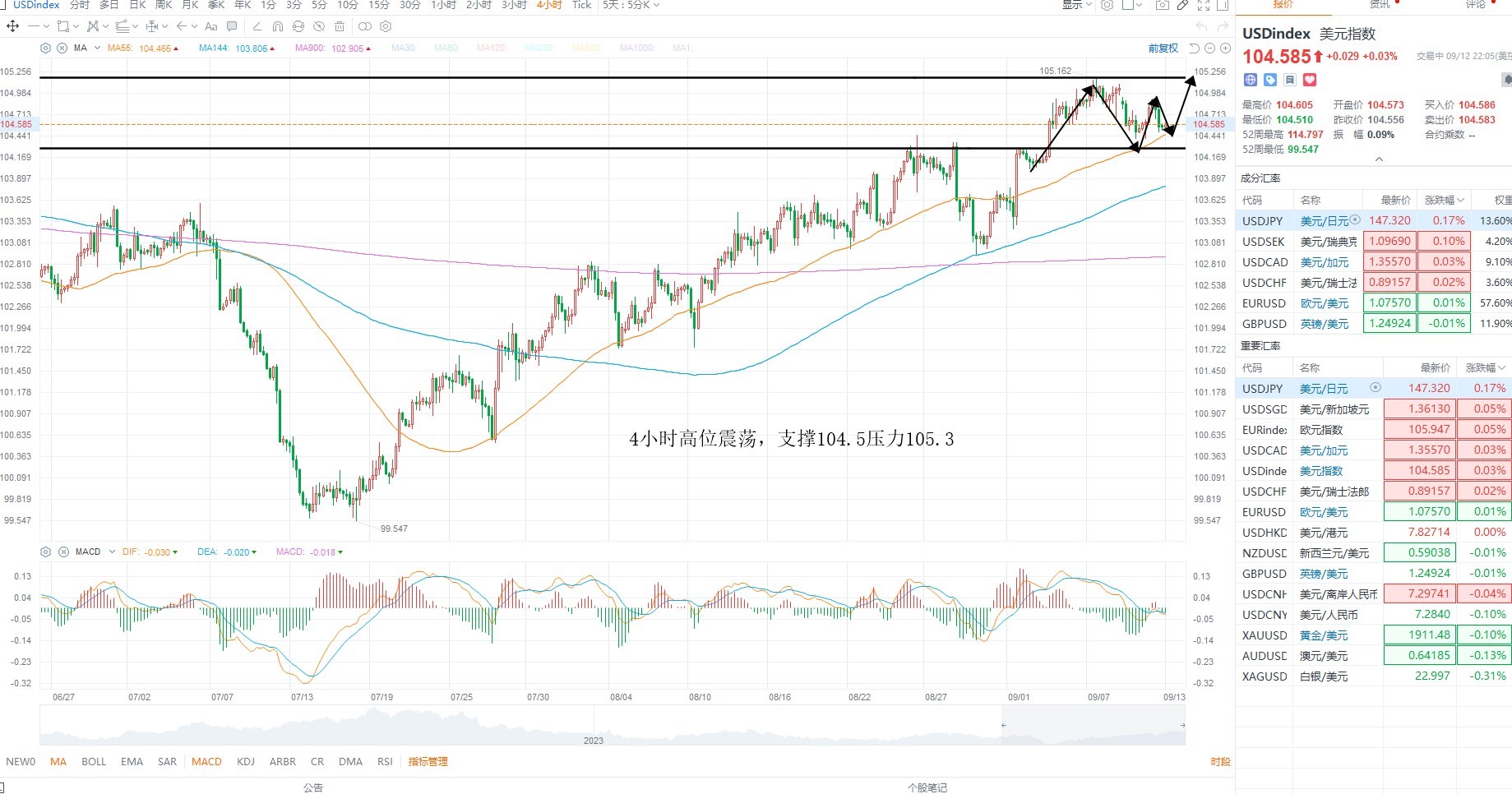美元指数维持在箱体之内运行,但并未破位,结构上依然是多头运行,市场在等待本月的美联储利率决议之后的方向选择,不过从美债收益率的角度来看,依然是多头结构,需要等待通胀数据进一步确认,若通胀拐头出现,则不排除美债收益率盘整见顶的可能性,金价方面继续走低,主要是受加息预期影响,短期等待整数关支撑确认为主,美原油继续走高,商品多头延续,等待突破为主