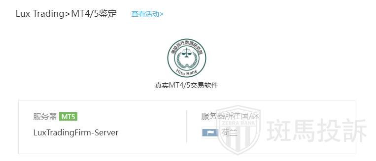 Lux Trading平台服务器有1台,在荷兰。
