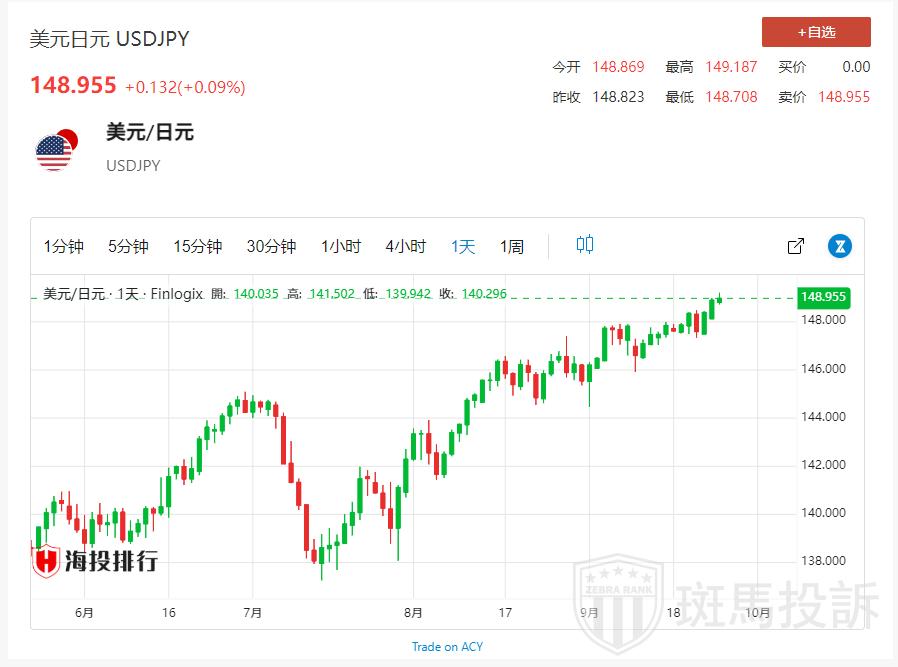 EC Markets报道:周五(9月22日)亚欧时段,美元/日元小幅冲高,一度刷新逾十个月高点至149.18,目前交投于149.03附近,汇市期待的日本央行“黑天鹅”事件再次落空,日本央行行长植田和男发表超鸽派讲话,强调如有需要,将毫不犹豫地加大宽松措施,无法确定何时会调整政策,为美元/日元多头创造条件。日本央行决议维持-0.1%利率,以及超宽松的收益率曲线控制(YCC)政策不变。