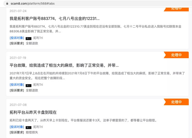 因拓利Tri平台于2021年7月7日早上8点左右开始的并持续到2021年7月8日下午因平台故障停盘超过24小时导致了后续的事情发生,给我造成了相当大的麻烦,影响了正常交易,并带来了重大的资金安全。