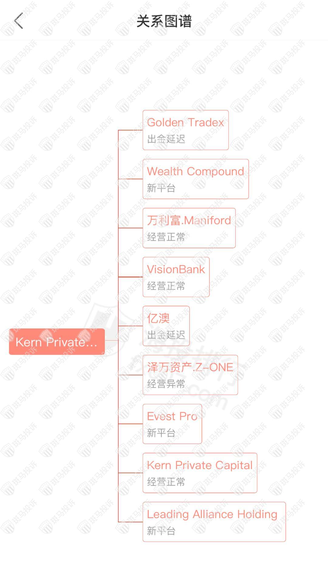 主白标关系显示,Kern Private Capital关联平台9家,其中有3家已经跑路,这个犯罪集团这几年通过庞大的诈骗网络,包装了一个又一个的平台,一次次在中国上演同样的套路,这次是包装Kern Private Capital平台,不幸的事,已有不少投资者上当受骗。