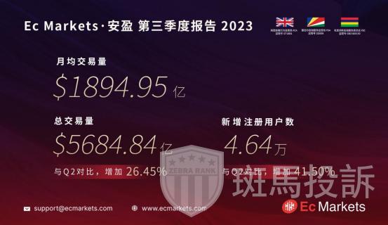 英国经纪商Ec Markets近期公布了2023年第三季度业绩报告,结果令人瞩目。在第三季度,该公司总交易量达到5684.84亿美元,较上一季度激增26.45%,同时新增注册用户数达到4.64万人,相比第二季度增长了41.50%。