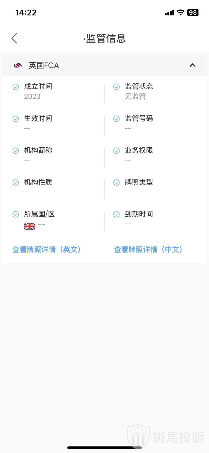 Enzo FX,在FxGecko显示无监管。对外宣称持有的英国FCA牌照监管状态为无监管,目前没有监管,也没有外汇牌照,不能做外汇保证金交易,投资者资金安全无保障。