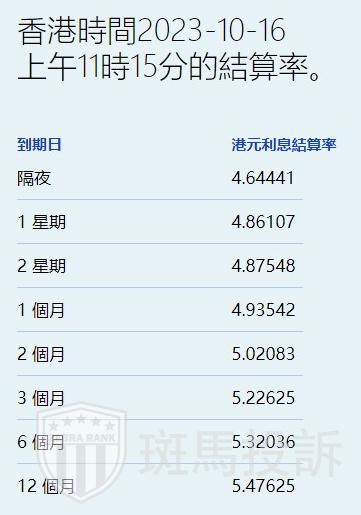隔夜拆息则跌近6点子,报4.64441%,创近两星期新低。长息方面,6个月及12个月拆息亦微跌,分别报5.32036%及5.47625%。