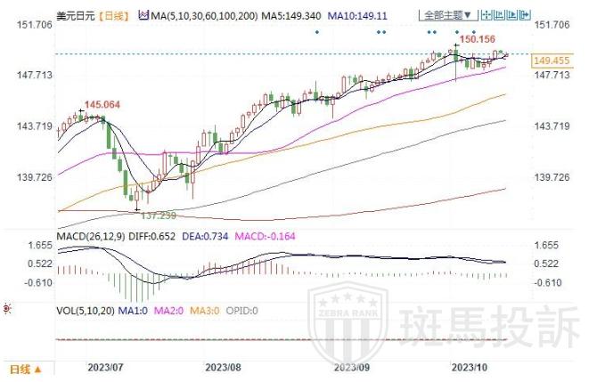 美元兑日元日线图北京时间10月16日14:23美元兑日元报149.455。
