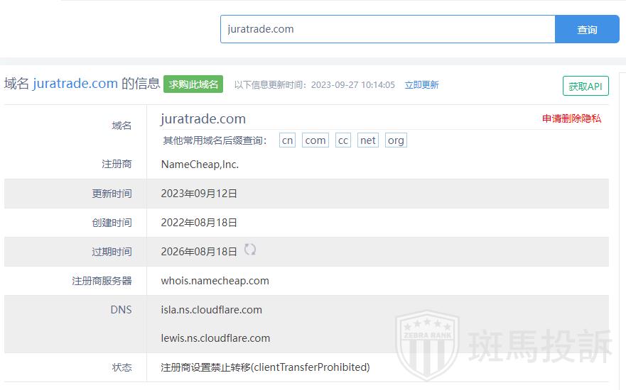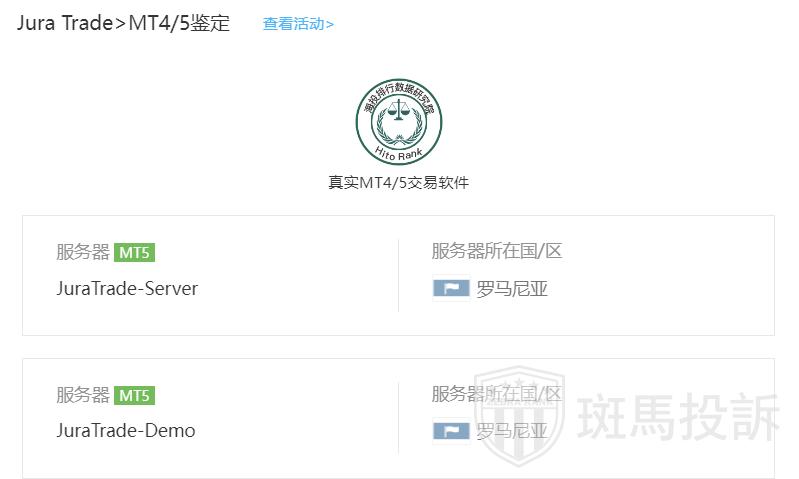 Jura Trade平台服务器有2台,均在罗马尼亚。