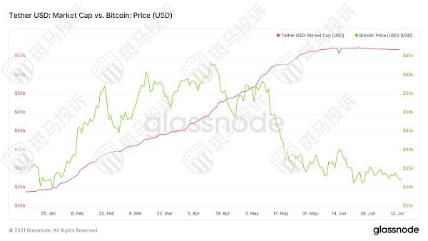 USDT的市值对比特币的价格来源:Glassnode
