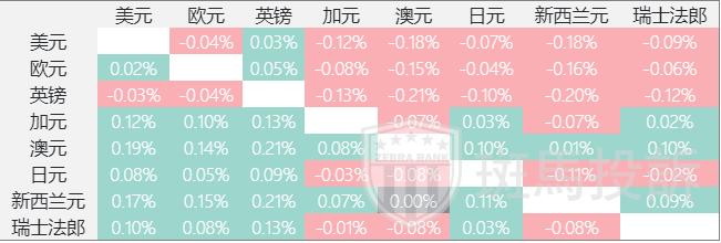 热图显示了主要货币之间的百分比变化。基准货币从左列中选取,报价货币从顶行中选取。例如,如果您从左列选择欧元,然后沿水平线移动到日元,方框中显示的百分比变化将代表欧元(基准)/日元(报价)。