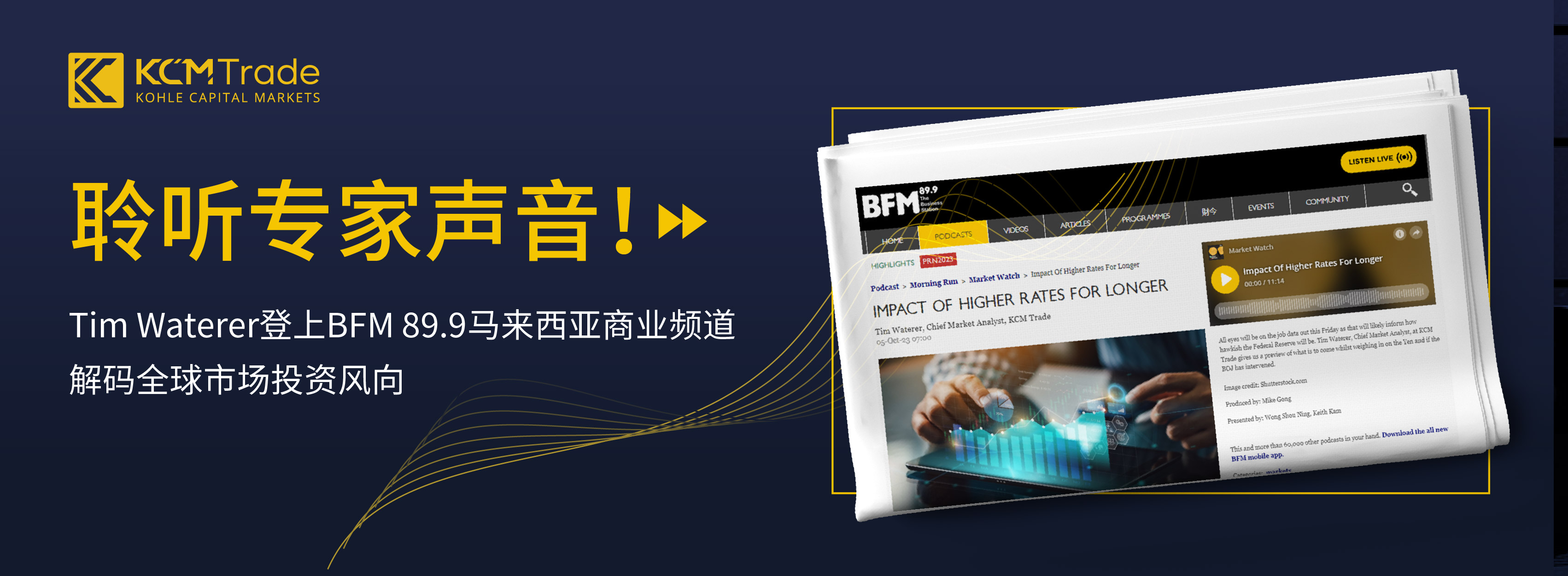 近日,KCM Trade的首席市场分析师Tim Waterer收到马来西亚BFM 89.9电台邀请,进行一次重要的采访。这次采访不仅旨在分享全球投资消息,还着重展现了KCM Trade作为金融服务商的媒体品牌影响力。
