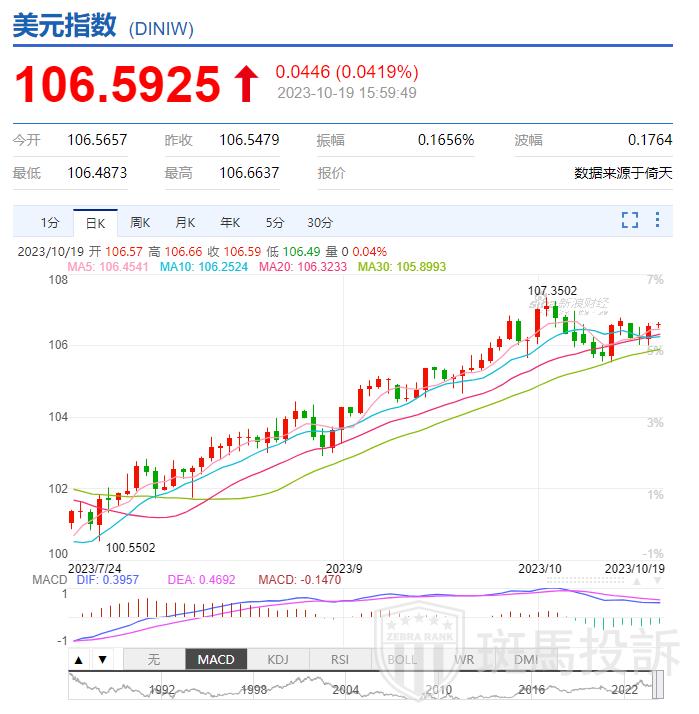 另外,美联储理事沃勒暗示,联储在利率的决策方面等得起,可以先按兵不动,观察降低通胀取得进展的情况如何,再做决定。作为美联储理事,沃勒任内长期拥有美联储货币政策委员会FOMC会议投票权。他在美东时间10月18日周三的讲话中指出,他会权衡最近公布的数据,判断美联储是否成功降低通胀,或者经济是否仍有韧性推升价格、制造通胀上行压力。沃勒说:“到今天为止,下结论还为时过早。因此我相信,我们可以等待,观察经济如何演变,然后再在政策利率的道路上采取明确的行动。”沃勒表示,如果实体经济疲软,美联储将有更多空间对进一步加息持观望态度,让最近的长期美债收益率上升发挥一些作用。“但如果实体经济继续显示潜在的潜在的强劲势头,并且通胀似乎企稳或重新加速,即使近期长期利率有所上升,也可能需要进一步收紧(货币)政策。”