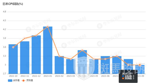 周五,日本内务省统计数据显示,日本9月CPI同比上涨3%,符合预期,较上月的3.2%有所放缓。