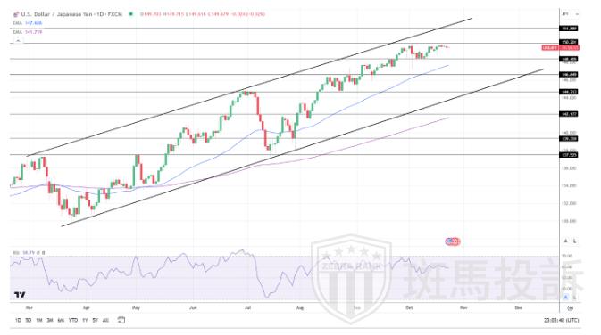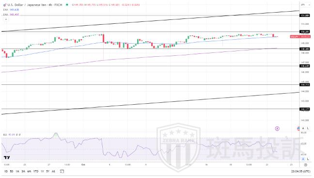 FXEmpire分析师Bob Mason表示,日线图上看,美元/日元仍高于50日和200日均线,发出看涨价格信号。美元/日元突破150将使多头在150.293阻力位上运行。