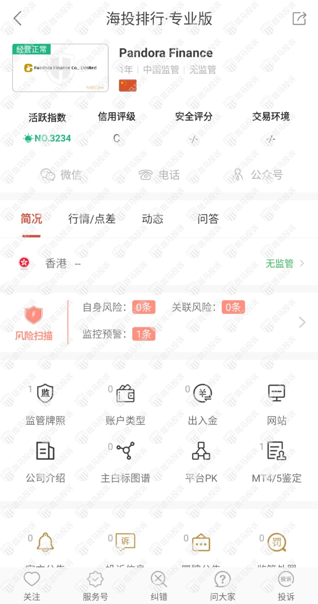 这家平台叫Pandora Finance,成立于2021年,全球排名3234名,目前无监管,没有外汇牌照,不能做外汇保证金交易,风险扫描显示1条风险,投资者资金安全无保障。