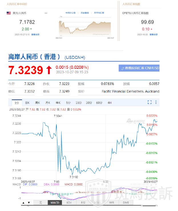 10月27日,人民币中间价报7.1782,上调2点,上一交易日中间价报7.1784。