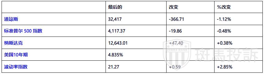 美国股市开盘积极后收低,随后在下午交易中回落。