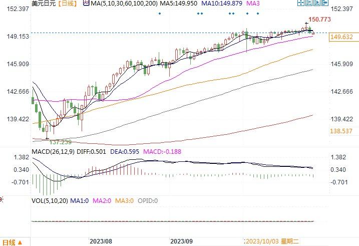 美元兑日元日线图北京时间10月30日13:54美元兑日元报149.64。