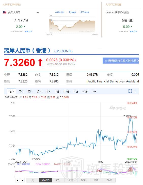 10月31日,人民币中间价报7.1779,上调2点,上一交易日中间价报7.1781。