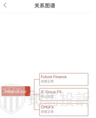 主白标关系显示,与Mina Group平台相关联的平台有3家,1家停止经营,另外2家经营正常。