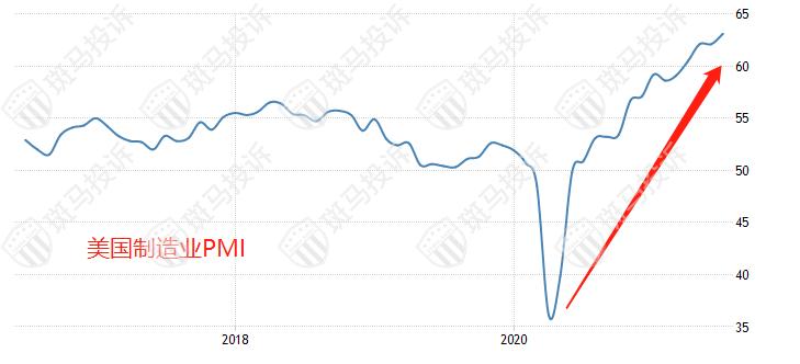 从上图可以看出,美国制造业PMI曲线处于上行状态,6月份最新数值为63.1,高于荣枯线水平。制造业的恢复将会带动大宗商品价格上涨,国际铜也不例外。另外,美国的PPI最新值为7.3%,增幅远超市场预期,且PPI曲线上涨迅速,表明市场对大宗商品的需求极为旺盛。