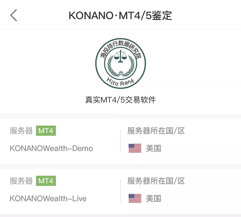 KONANO有2台MT4服务器,搭建在美国,实际上该公司在台湾经营;