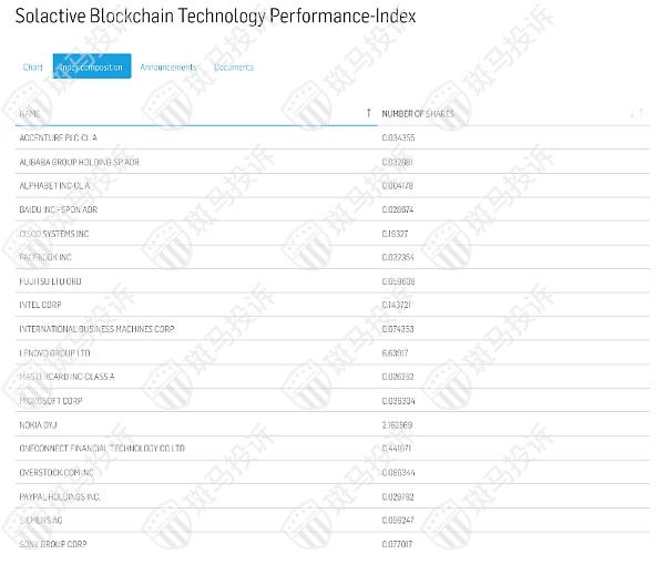 Solactive区块链科技表现指数的成分构成
