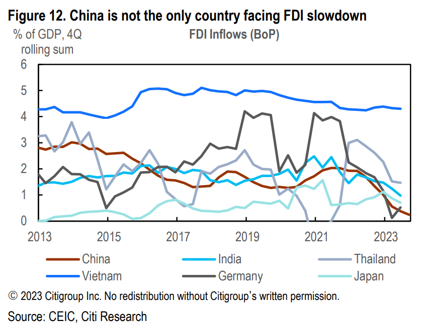 图:中国的inward FDI下降?故事可能没有这么简单!(by Citi)
