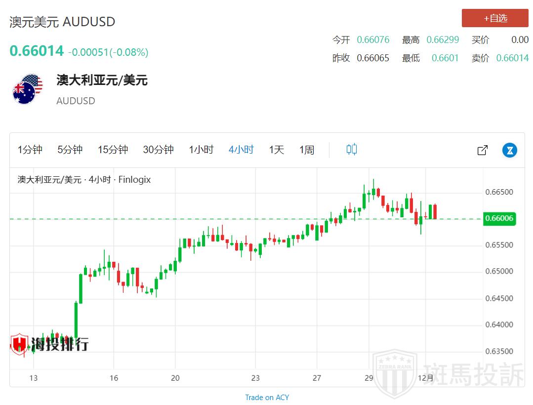 美元反弹,澳元/美元维持疲弱,处在0.6605附近。