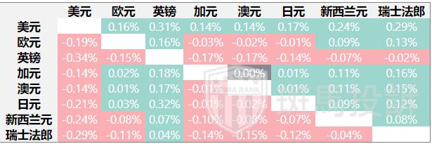 热图显示了主要货币对的波动百分比变化。基准货币从左列中选取,报价货币从顶行中选取。例如,如果投资者从左列选择欧元,然后沿水平线移动到日元,方框中显示的百分比变化即为欧元/日元波动。