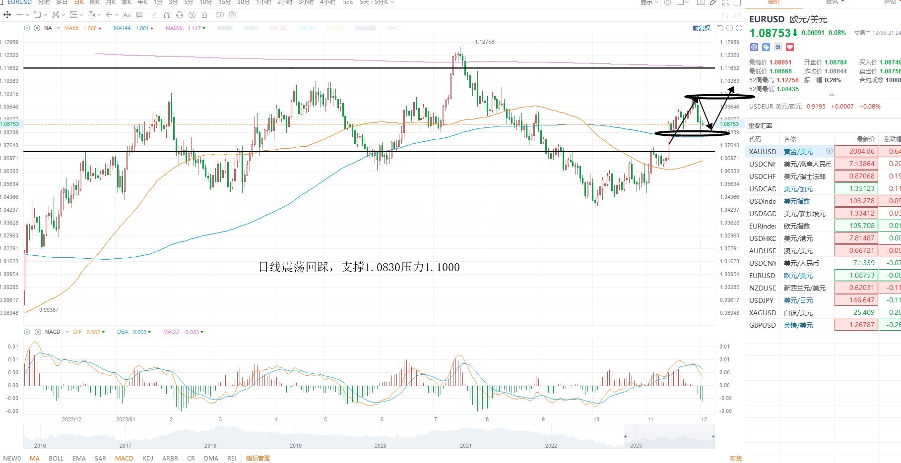 欧美冲高回落,短期依然处于回踩区间之内,基本面上美元指数尚未破位,但降息预期提前,施压美元,需要注意的是目前非美依然在多头上行阶段,结构上等待回踩之后的低吸机会为主,欧美日线级别支撑1.0830附近,上方压力1.1000突破则加速上行