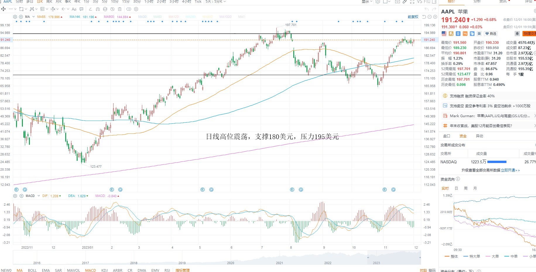 AAPL维持高位震荡,目前基本面上并未出现明确的改善,因业绩增速下滑导致的调整尚未结束,叠加指数也是在高位运行,因此日内维持箱体对待,上方压力195美元附近不破,则存在回落的需求,下方支撑180美元附近