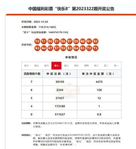 神秘彩票得主是何身份?并且能有效规避个人所得税,成了一个谜!见过此次中奖彩民的彩票店店主王先生(化姓)表示:“他是一位老彩民,常来我这边购彩。12月2日晚,他先去了我朋友开的一家店,把那家店剩余的彩票都买完了,接着就去了旁边的另一家店继续买。”王先生认为,花10万多元全投在“选七”玩法的同一号码上,并不是一种孤注一掷的行为,也不是“掌握了啥内幕消息”。他还说,投注额度到10万多元的情况他们也见过,“选七”能中四五个数就可以追回损失了。“但倍投全中的,确实罕见,我也是第一次见。”