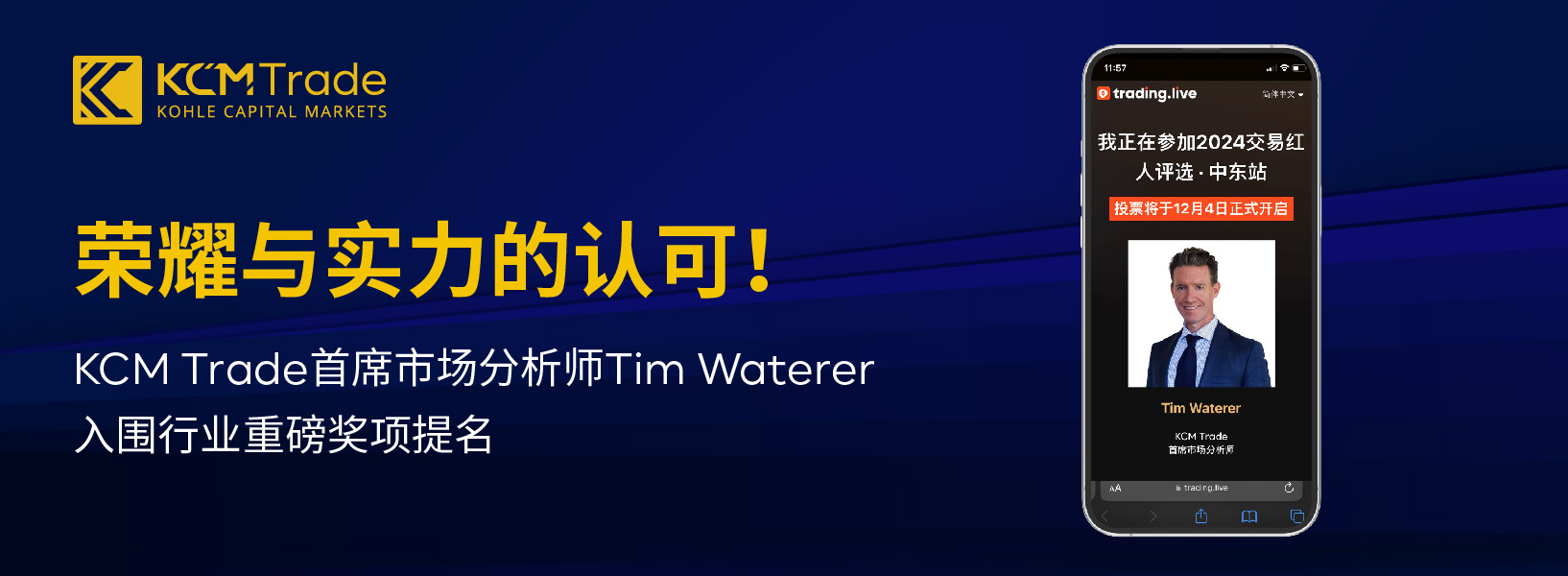 KCM Trade首席市场分析师Tim Waterer凭借20多年的金融市场专业知识、专业的市场分析和前瞻性趋势判断,在2024年交易红人评选活动中获得2024年最具交易影响者奖提名,成功入围两大奖项:最佳市场分析和最佳外币策略分析师。Tim Waterer在外币、股票、指数和大宗商品方面等金融衍生品领域丰富的从业背景是他入选的关键。随着12月4日至15日投票期临近,我们希望一直以来最支持我们的用户投下宝贵一票,鼓励Tim Waterer在市场分析和外币策略为我们卓越表现,您的一票是Tim Waterer今后砥砺分析的不竭动力。投票结果定于12月18日至1月31日举行,为这一场行业年度盛典画下完美句号。