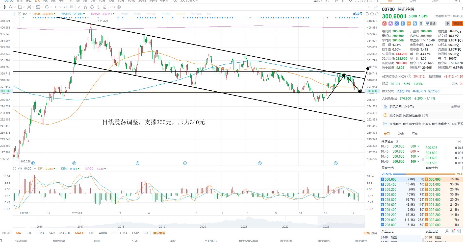腾讯控股短期震荡调整,但依然在支撑位置附近,虽然指数进一步下行,但权重并未跟随走弱,日内等待企稳为主,短期继续关注流动性是否回暖,从而支撑权重共振走高,日内多空分水岭300元附近企稳低吸,上方压力340元附近