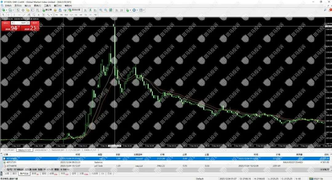 有用户反馈,本人王某在GMI平台交易(交易账户311435/服务器04),12月4日在2168进单1手黄金,MT4时间是1点37分01,当时因为报价错误拉大点差导致爆仓强平。如果按当时的巨大点差,本人账户资金是不够进场建仓的,而不是进场之后扩大,导致我不到1秒爆仓9392美金。