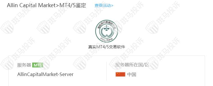 Allin Capital Market平台服务器有1台,在中国。
