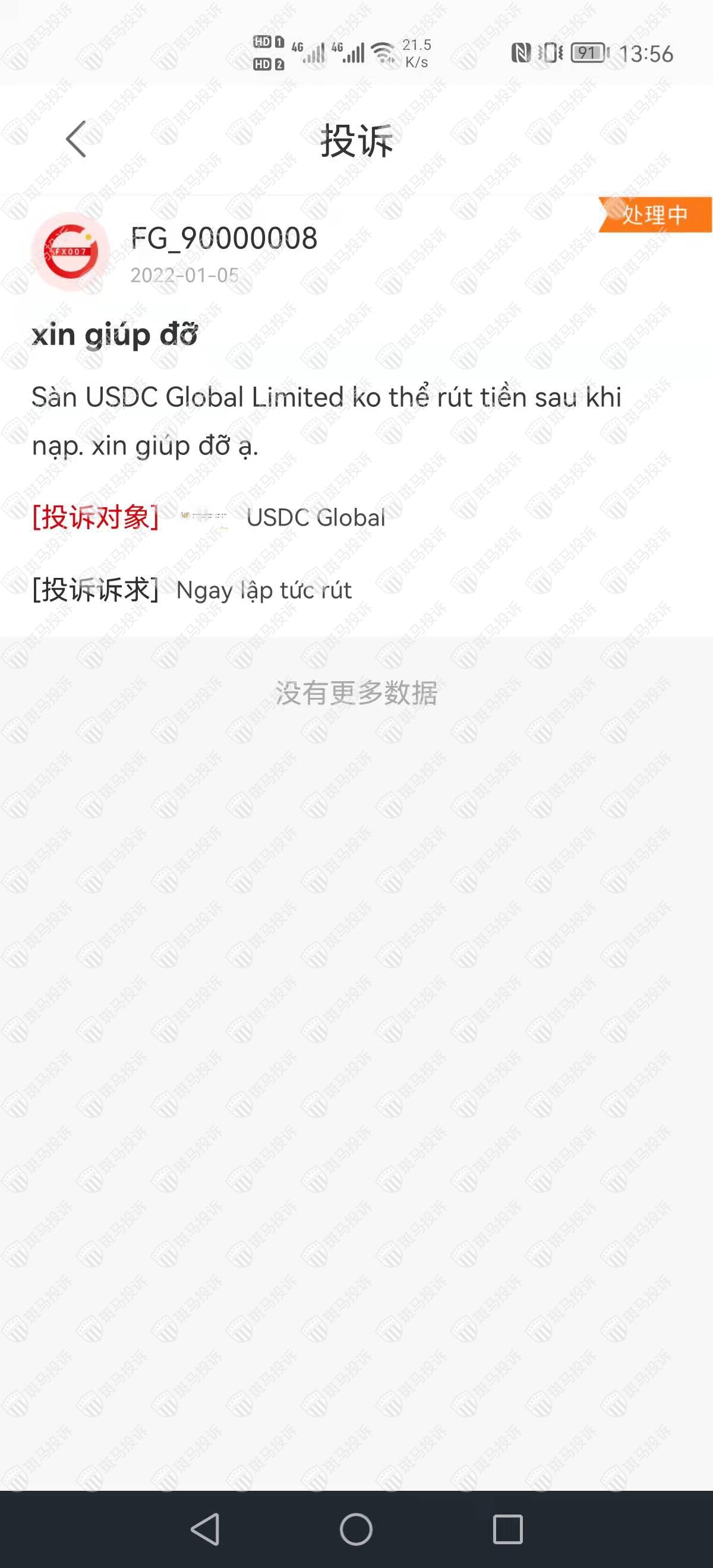 Allin Capital Market的关联平台USDC Global在斑马投诉有1条投诉。