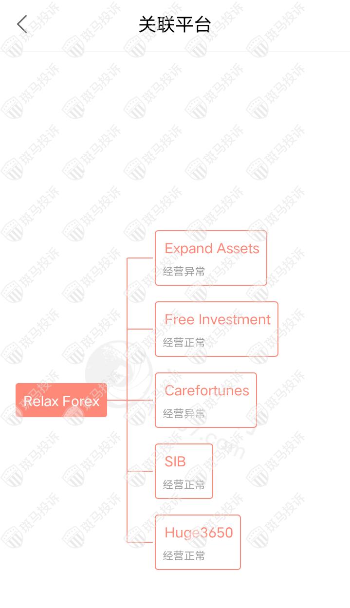 主白标关系显示,Relax Forex平台目前和5家平台存在关联,其中两家存在经营异常的情况。